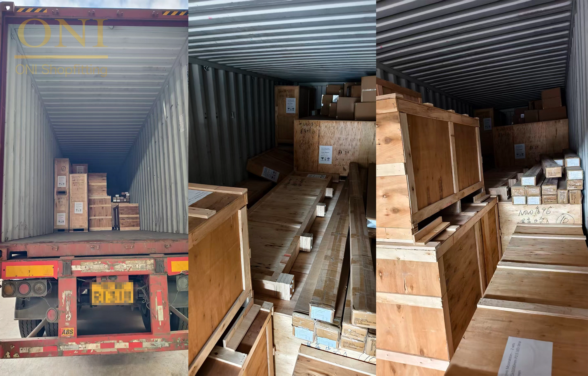Record display anti-damage packaging, component fixation, container loading details, highlighting professional overseas transportation protection & large cargo delivery capacity.