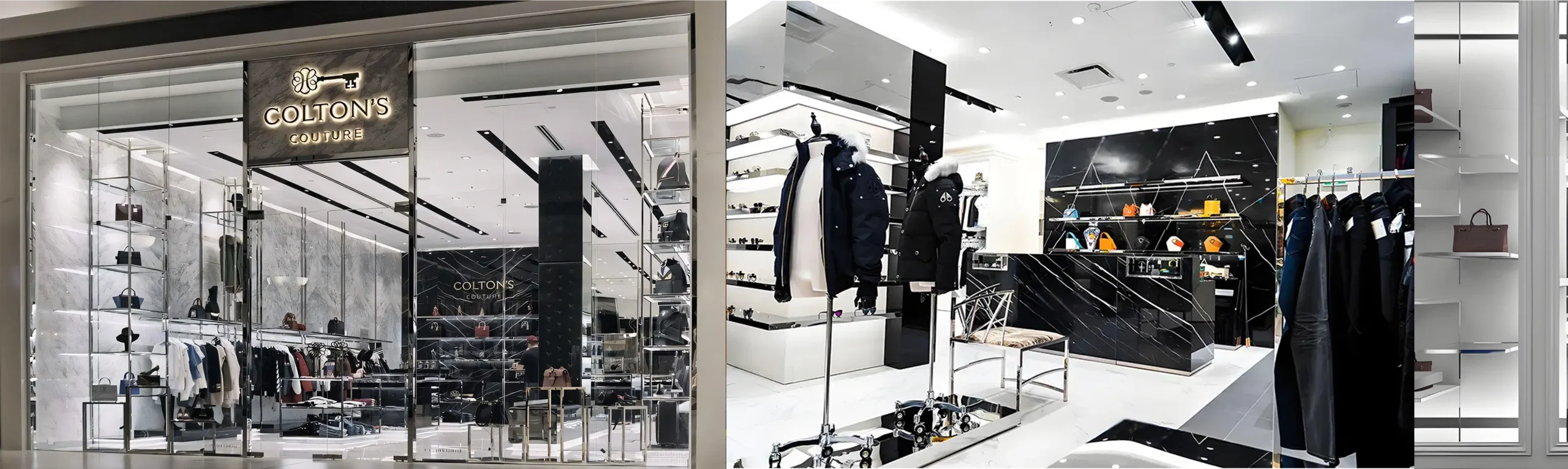 The store exudes a high-end and fashionable atmosphere, with clothing display racks and display facilities carefully arranged. Various clothes are displayed in an orderly manner in exclusive display areas, and with the comfortable rest area, each piece of clothing can fully show its own style, and it also creates a pleasant shopping environment for customers, stimulating their desire to try on and buy.