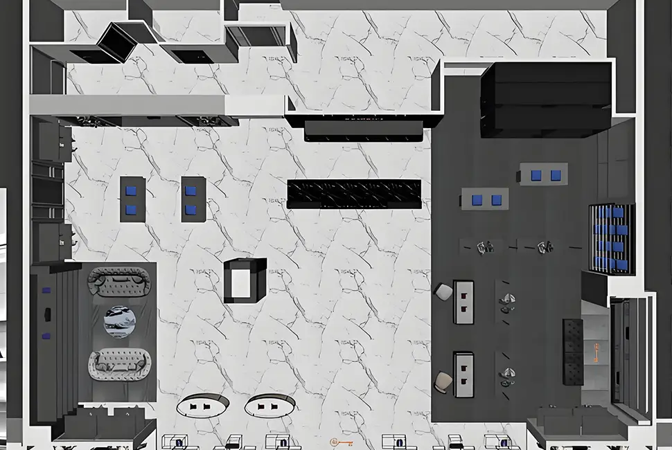 Contact us to get free unique design! Our design team will make customized design for your shop/showroom/kiosk based on your requirements and budget!